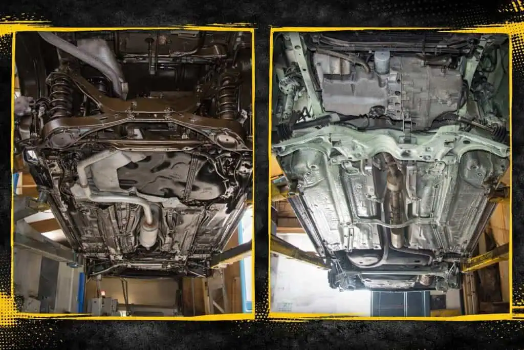A kerékjárati dobbetétek, valamint az alvázon található műanyag takaró és védő burkolatok leszerelése az alvázról. Valamint a hővédő/hőterelő lemezek eltávolítása, kipufogó leszerelése vagy leakasztása. Így a nehezen elérhető részek is szabaddá válnak.